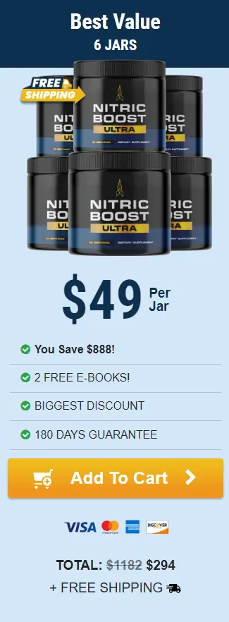 Every single Nitric Boost Ultra supplement purchase is backed with a 180-day 100% money-back guarantee. So if you are not impressed with the results, you can simply choose this refund policy for getting your complete money back.